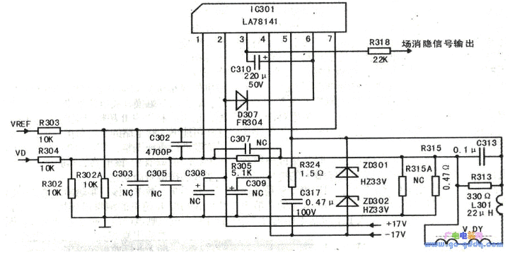 Beberapa merek TV menggunakan IC vertikal buatan Sanyo ini. IC ini memiliki pin sejumlah 7 buah. Berikuti ini data pin ic vertikal LA 78141